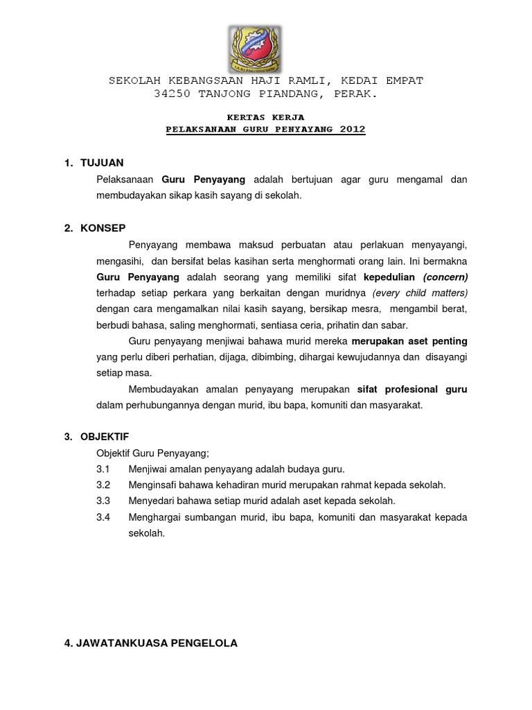 kertas kerja program guru penyayang
